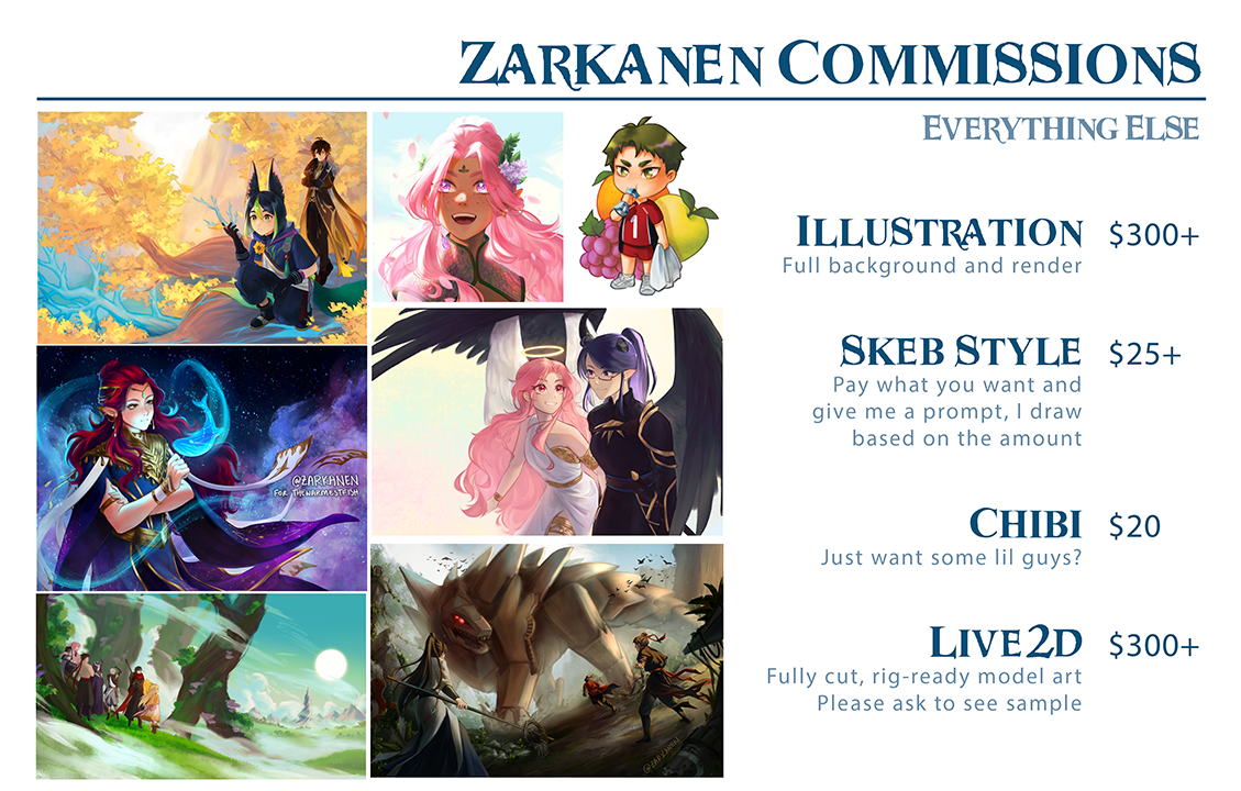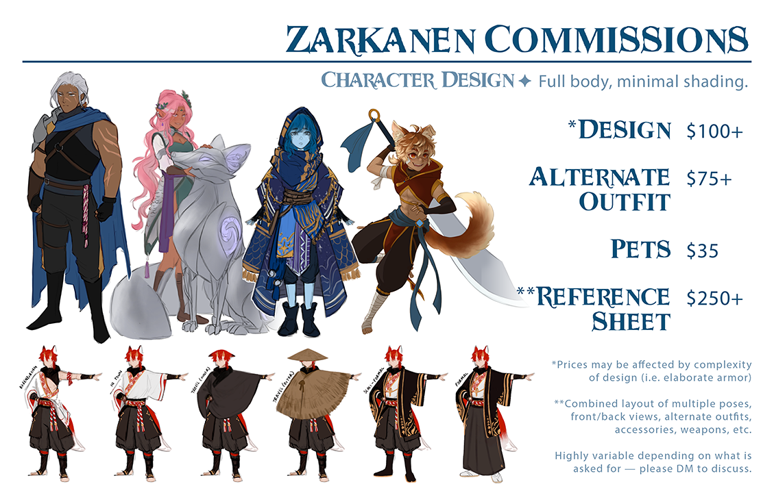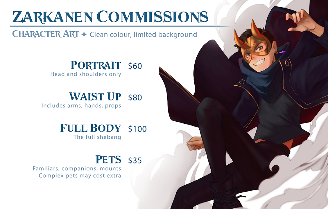 Comms are currently open!Please email [email protected] or message me on discord (@zarkanen) for enquiries.